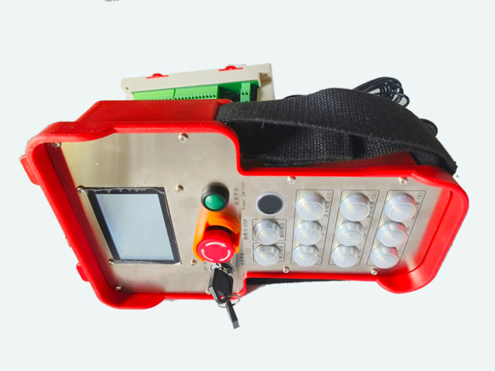 1发2收指纹识别授权式100米6路全双速行车起重机无线遥控器,整套包含1台发射器端+2台接收器端,遥控距离按照100米提供,接收器内置式,配外置延长3米吸盘天线。